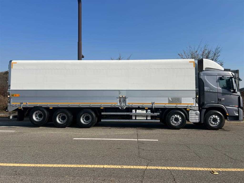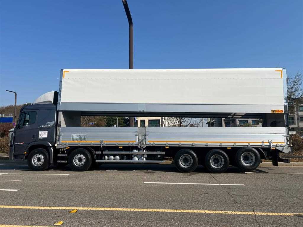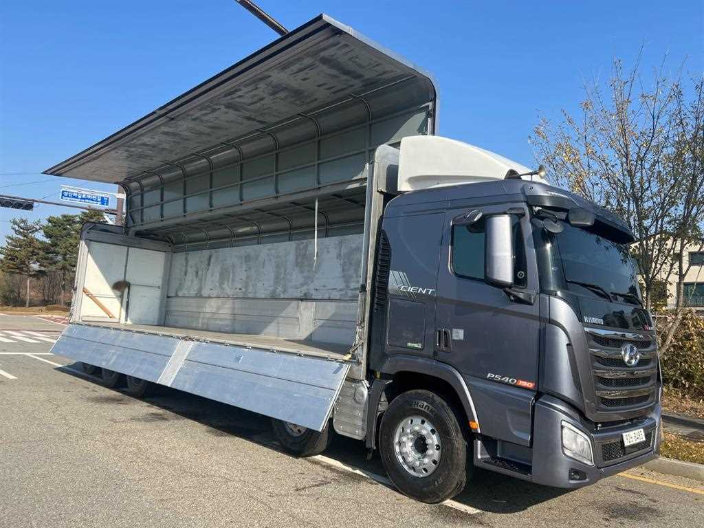 ▶ 추가장착 옵션 :: 16년식 엑시언트 25톤 상승 윙바디(신규설치_1500mm 상승), 540/오토, 제원 : 11,170*2,495*3,800, 하대 :